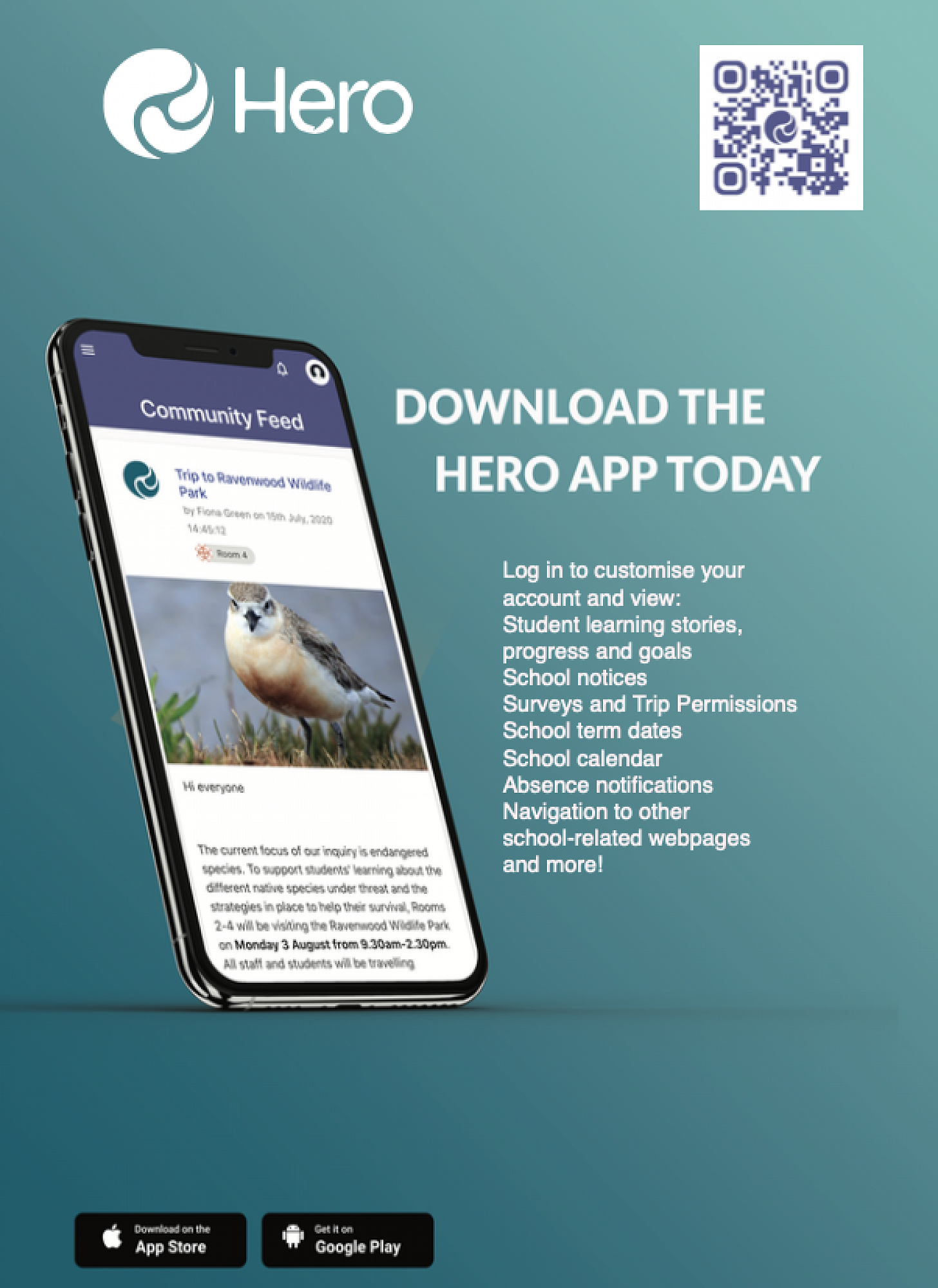 Log in and open Hero. Choose "Report an absence" and select the option that best suits the reason. If your child is absent but not sick please provide additional information for the absence, eg: on holiday, offsite activity etc