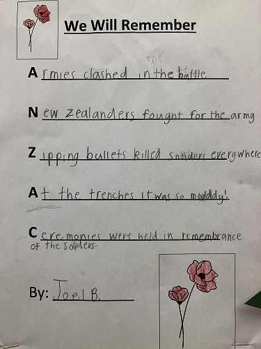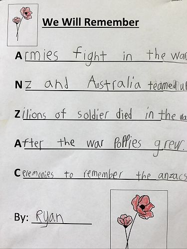 Year 3 and 4 have been writing poems commemorating Anzac Day. Some of their work is below.