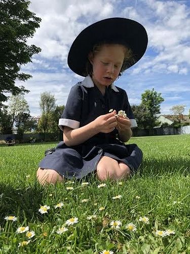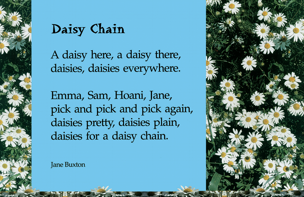 It was so hot on Friday Room 14 took the learning outside under the shade of a big tree on the field. Our class poem this week was called 'Daisy chain'
