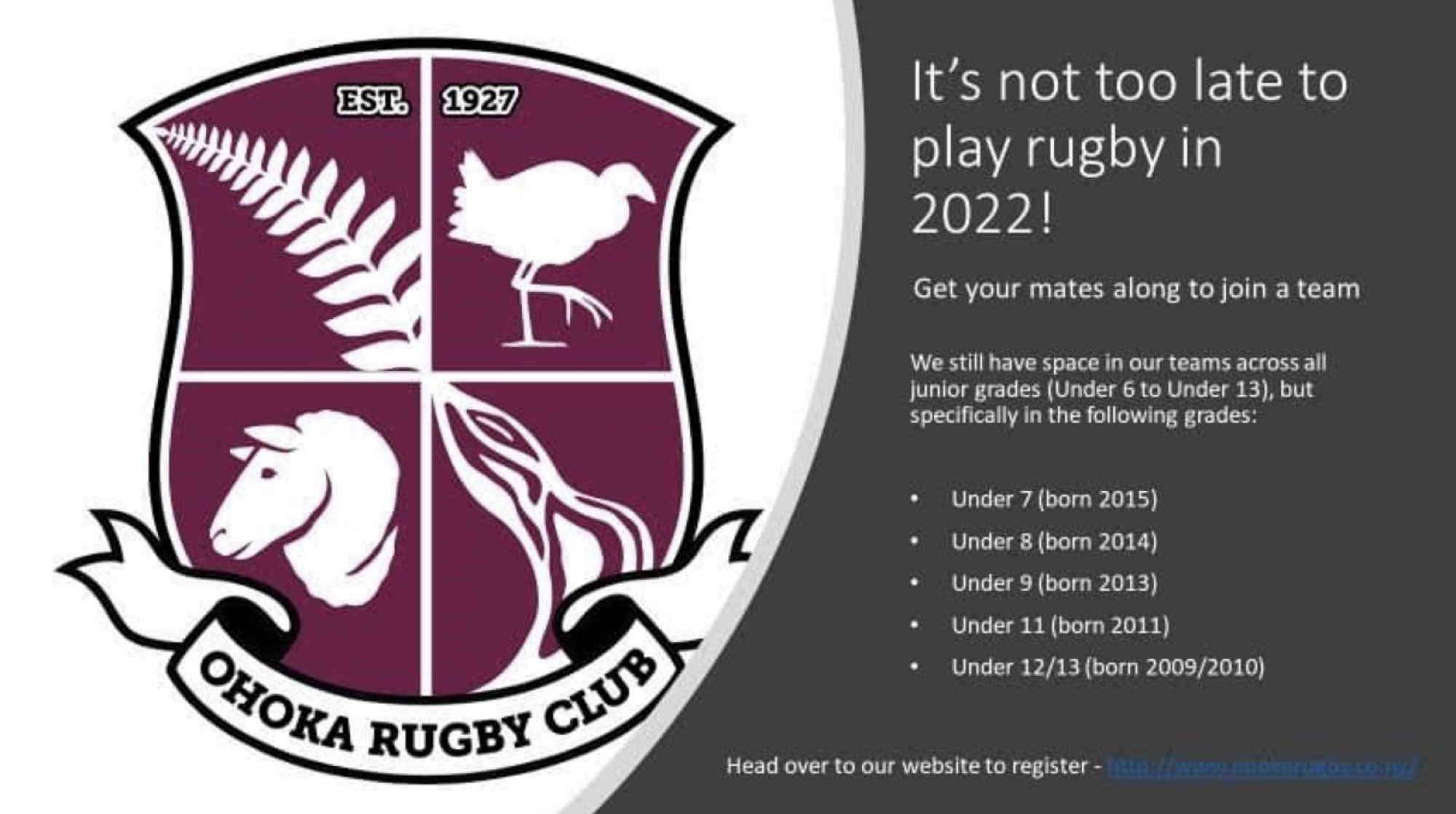 Please see the attached flier with information about how to register for Ohoka Rugby Club.