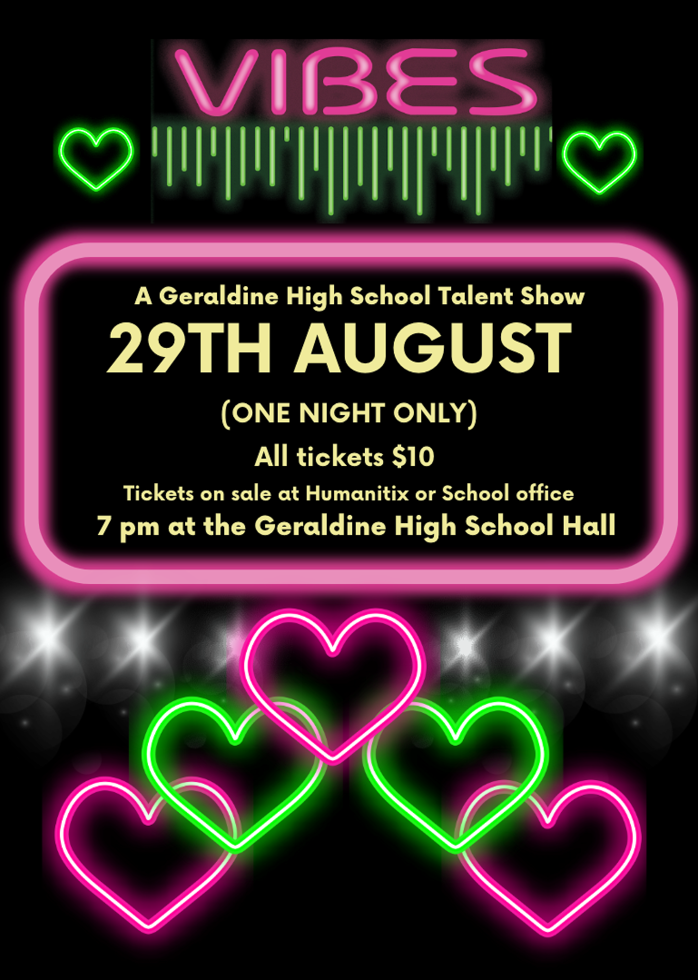 All tickets are available online on Humanitix - https://events.humanitix.com/host/geraldine-high-school