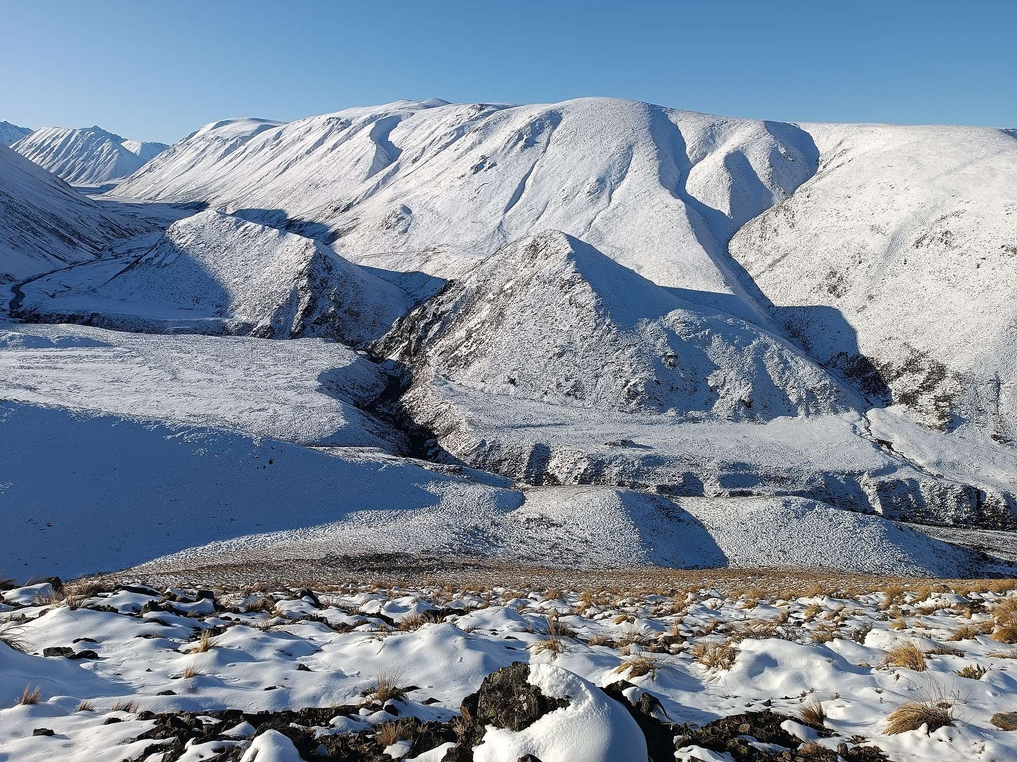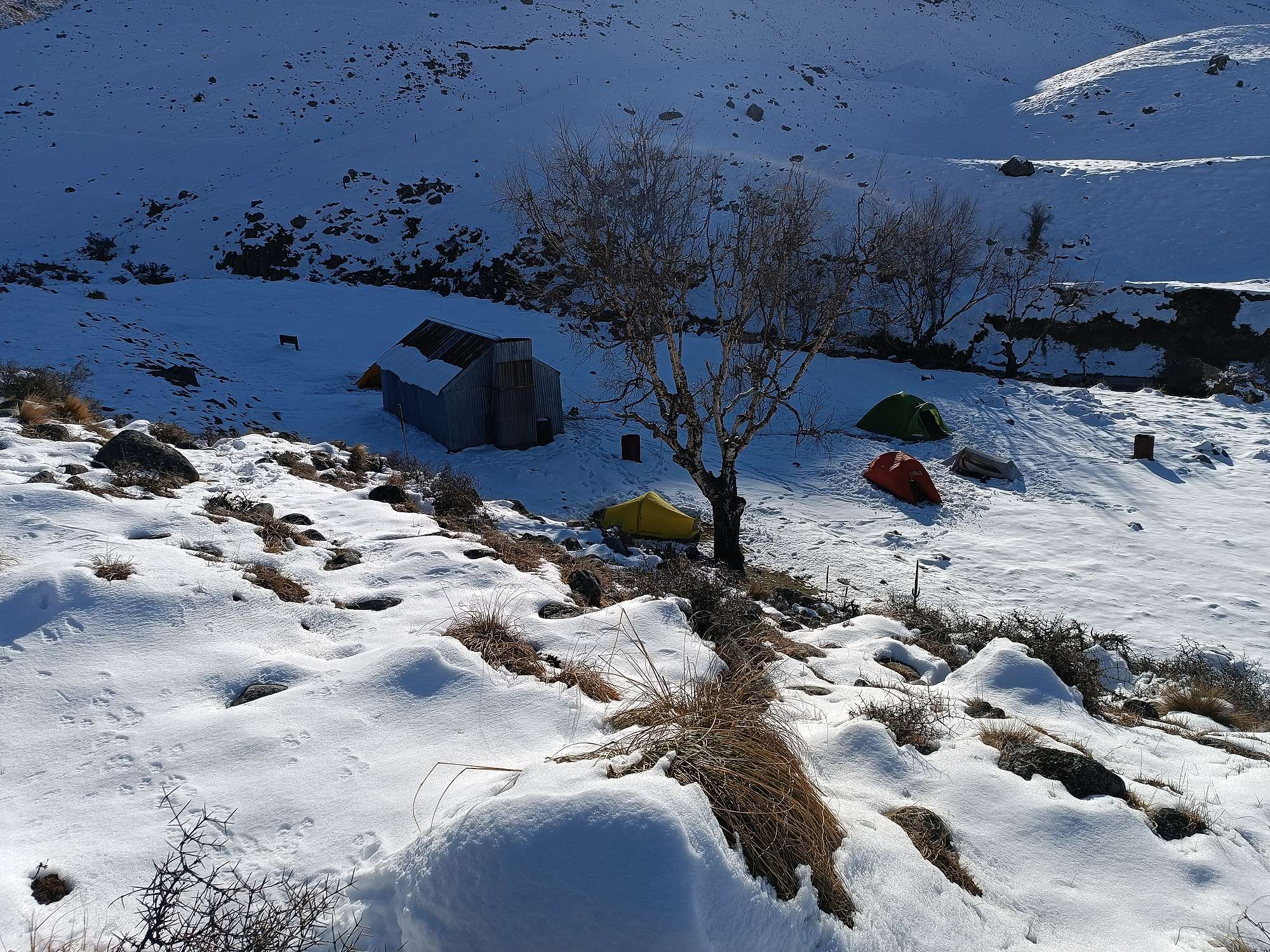 The second day, we made the decision to tramp out the South Branch of the Ashburton River. There was very little snow on the northern aspect of the hills but route finding was a mission as we made our way down the valley. We ended up bush-bashing our way through matagouri, bush lawyer, bracken and rose hip.