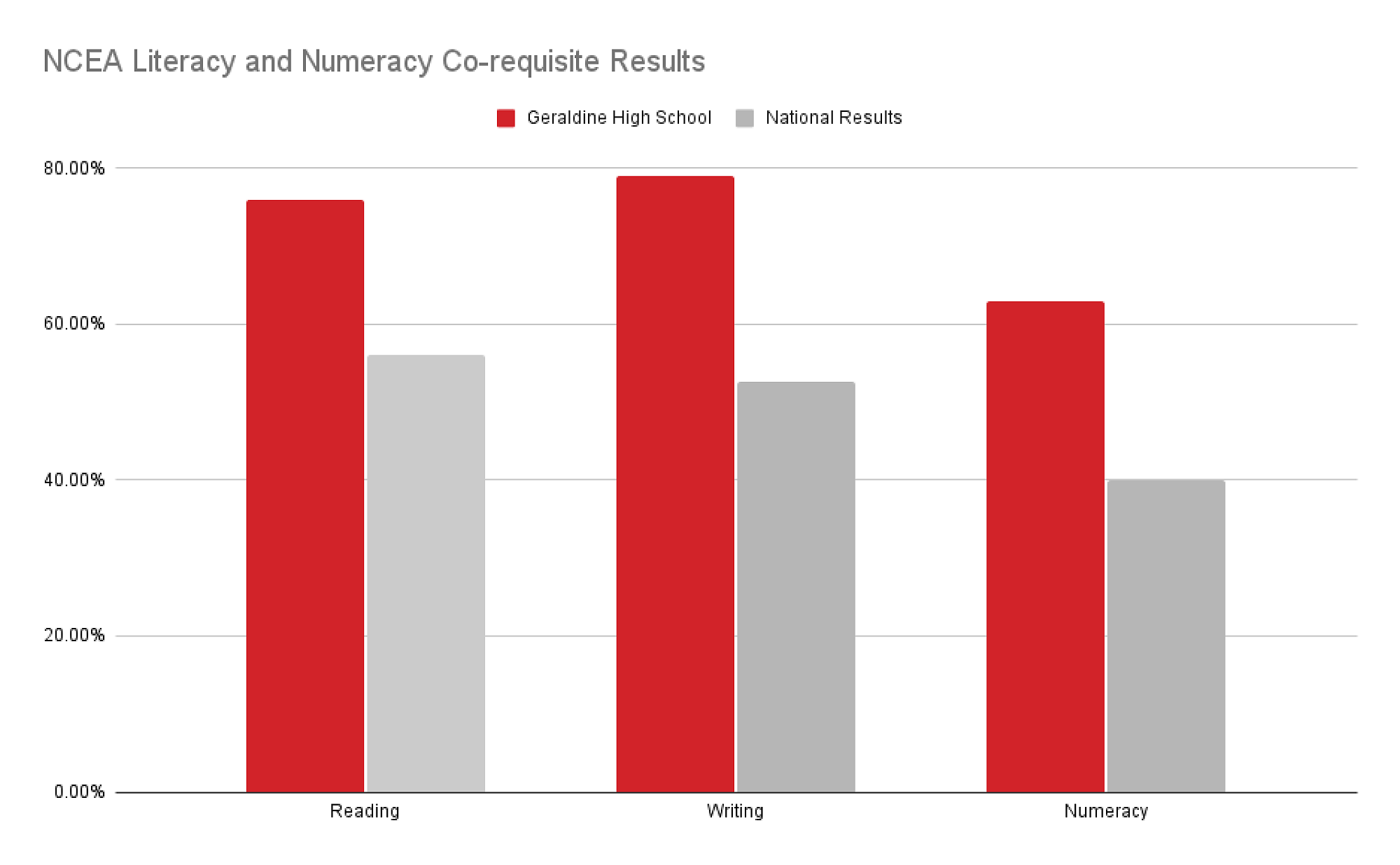 National Results: Reading 56%, Writing 52.5%, Numeracy 40%