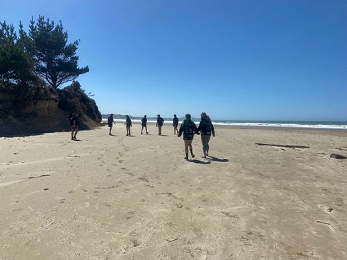 It's quite warm so a frolic in the ocean is in order. Our Ashburton baby (Josh) has never been to the Moeraki Boulders so it would be rude not to stop. The lads introduce the tourists to mullets waving in the breeze as we attempt a Baywatch beach run. Generally, males and water are a recipe for disaster - think small children and multiple changes of clothes……Clearly we have an unexpectedly talented group on tour this year with the biggest challenge being Richard breaking his stick. Back at the van he updates his feelings journal and it’s smiles all round.