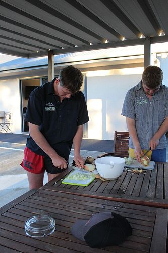 It's a reasonably tame trip through to Kaikoura with Team Leader employing “the look” just once when we pause to collect Cullen in Christchurch where, while waiting, the lads perform a spot of car park frolicking with the rugby ball. Our 1st XV player demonstrates his questionable skill. We work up a sweat loading Cullen’s gear and high tail it out.