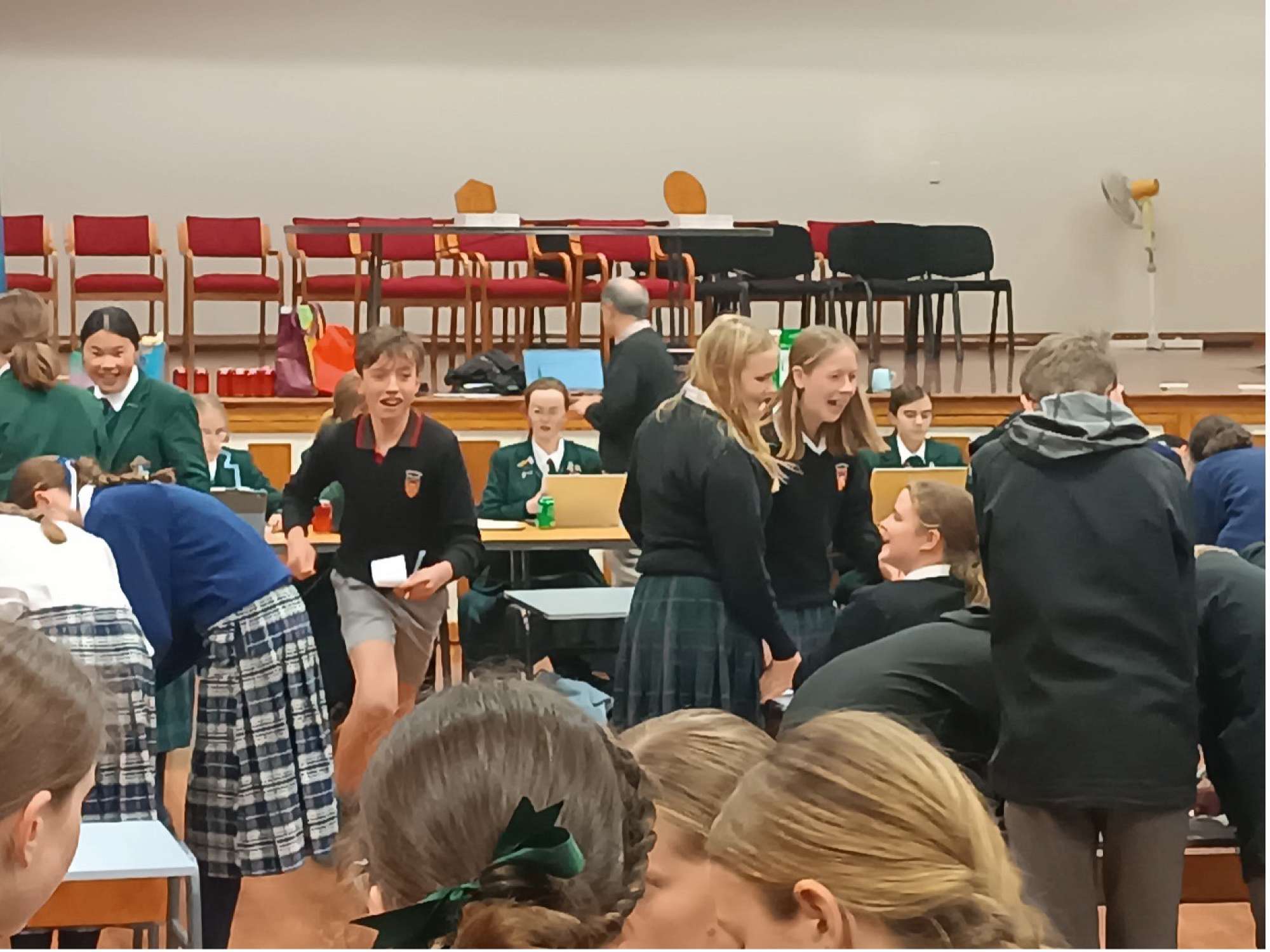 Our Year 9 team, with the runner holding a new question and running as fast as possible to his team.