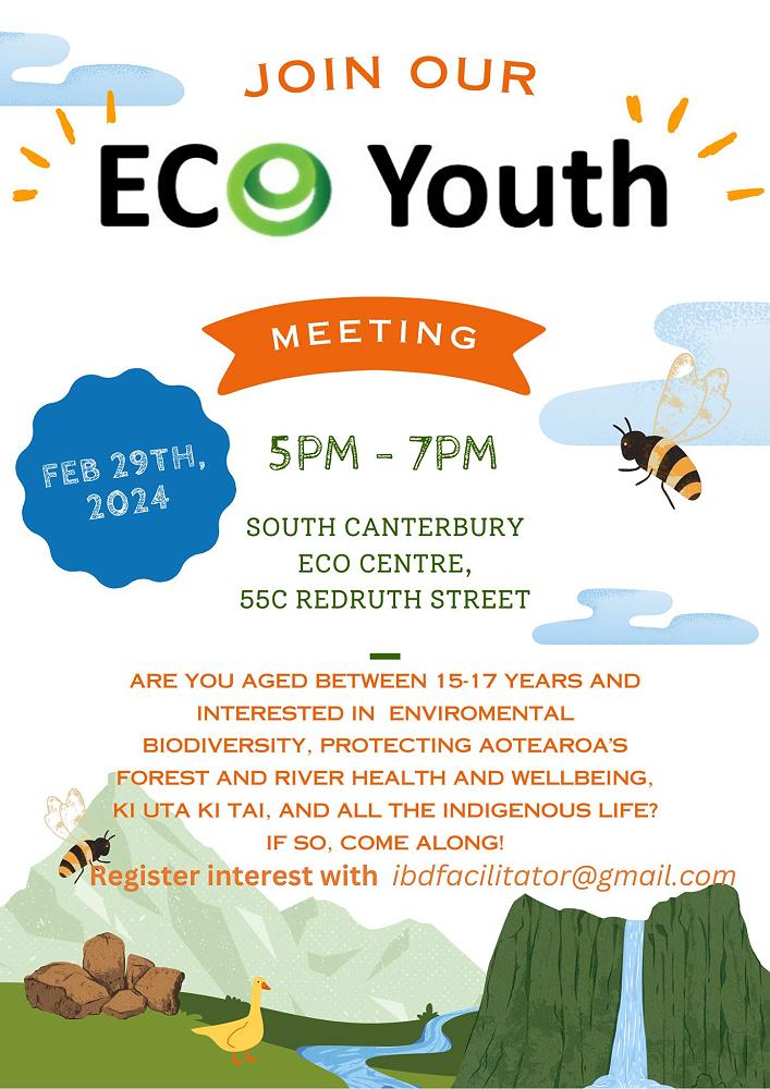 I know that there are often a small 'environmental' type group at school and these young people are would fit right in this new group. I have consulted with the leaders of Youth Rōpū (ECAN), Forest & Bird, Timaru District Council and they are all supportive of this initiative which will attempt to bring together these individuals and connect them together so they may become more confident, informed, effective and resourced in environmental issues with practically focused activities. This will benefit their schools and the wider community by bringing back credible information, ideas and support for the activities they want to do locally.