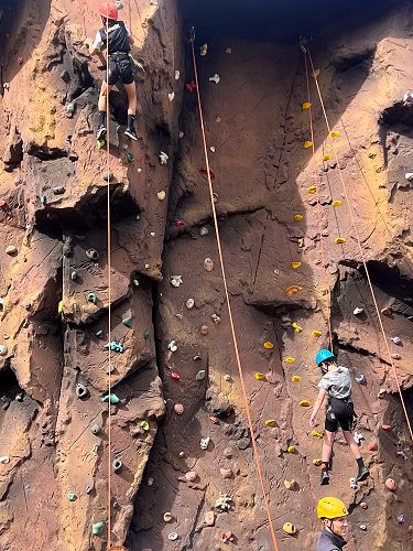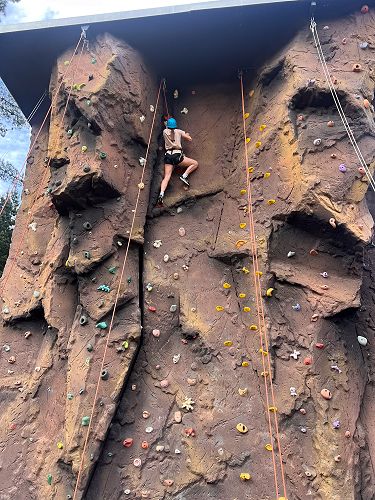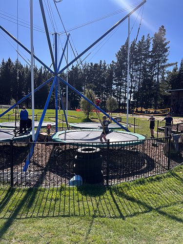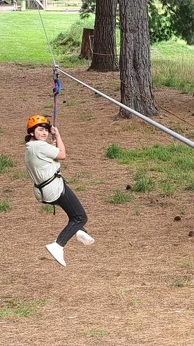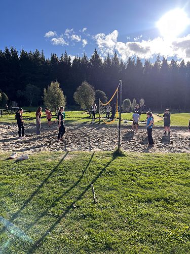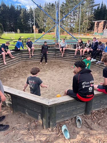 When we arrived at camp, everyone was clearly tired from the journey. After unpacking, we were divided into groups and started our first round of activities. Typically, we would have two rounds before breaking for morning tea, lunch, or afternoon tea, but since we arrived later than expected, our day was shortened to include lunch only. With no more scheduled activities after lunch, we had free time to explore the camp. Some of us played games like beach volleyball, jumped on trampolines, explored the playground, or played soccer with the camp owners' kids. Others relaxed in the cabins. However, the gaga dodgeball pit — a sand-filled octagonal arena — was by far the most popular game.