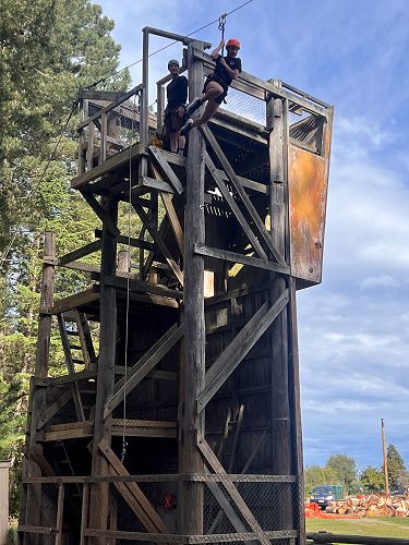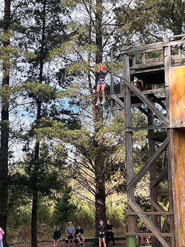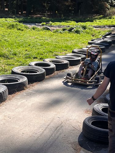 The next day, we had a full schedule of activities, with different groups rotating between go-karting, ziplining, mini golf, frisbee golf, a climbing wall, aero jump, archery, and rifle shooting. All of these activities were so much fun!