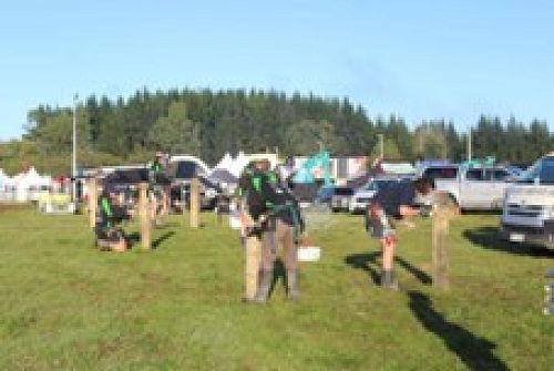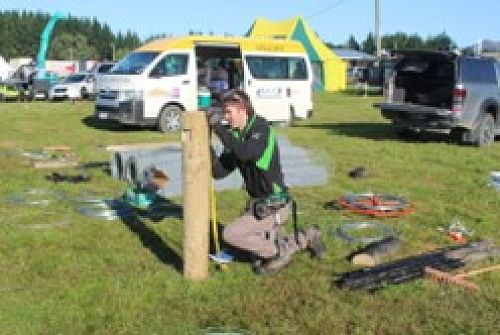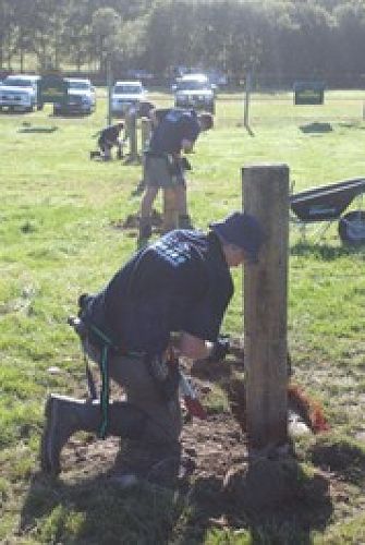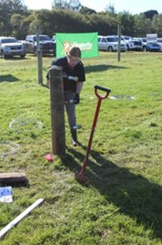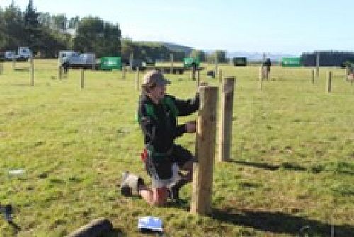 Our friendly fencing champion, Nick Leifting: FYI 39 straight years NZ finalist, National and World Champion, sorts the crew and it's game on; building 4 sets of competition fences. Kylie works up a sweat as the camera is passed over. John starts endurance training as he is sent off to our friendly sponsors at Warratah & strainrite, to beg and borrow a bit of extra kit. The eyelashes get a work out and he is looking at a favourable performance review based on the free goodies he returns with.