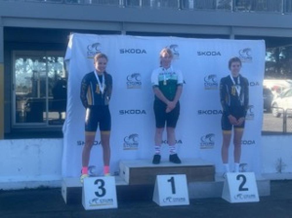 Kyra Marett had another successful weekend at South Island schools road championships. On Saturday Kyra had the time trial. It didn’t go exactly to plan, but she still won the bronze medal.