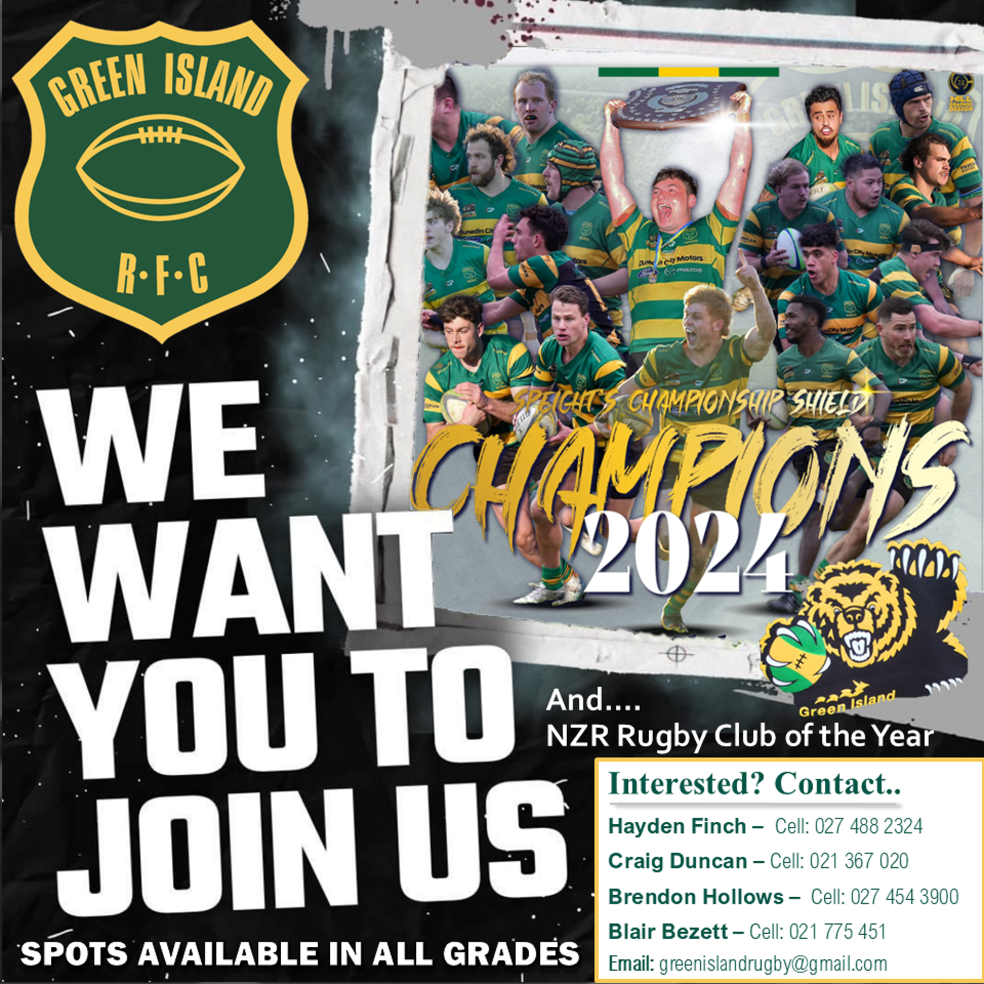 Looking for a change of scene? Want a new life experience? Come play rugby with Green Island in Dunedin (New Zealand)...