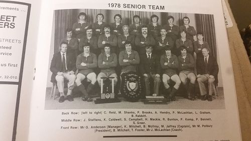 Gavin Anderson was a well respected Green Island player and manager and staunch club supporter. Big Gav, as he was affectionately known, was a great manager and was in that role when our Senior team won our 3rd banner in 1978. It helped that he was a big man with big hands, and players were weary to cross him. Those that tried were reminded of their standing through a "Big Gav's Horse Bite" - a 20+ second grip of the player's leg just above the knee - and decorum was resumed!