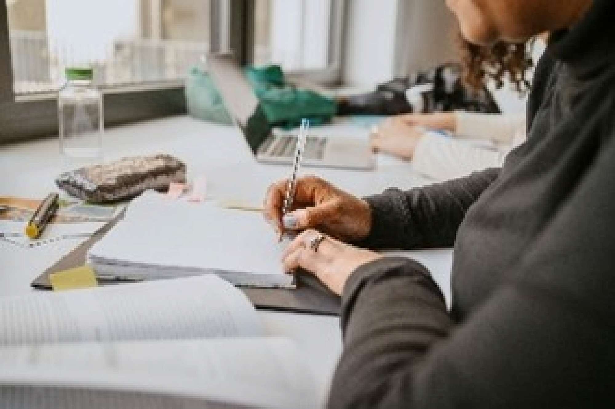 Make it comfortable. You’ll want decent lighting for reading both screens and notebooks and a sturdy chair to support your back.