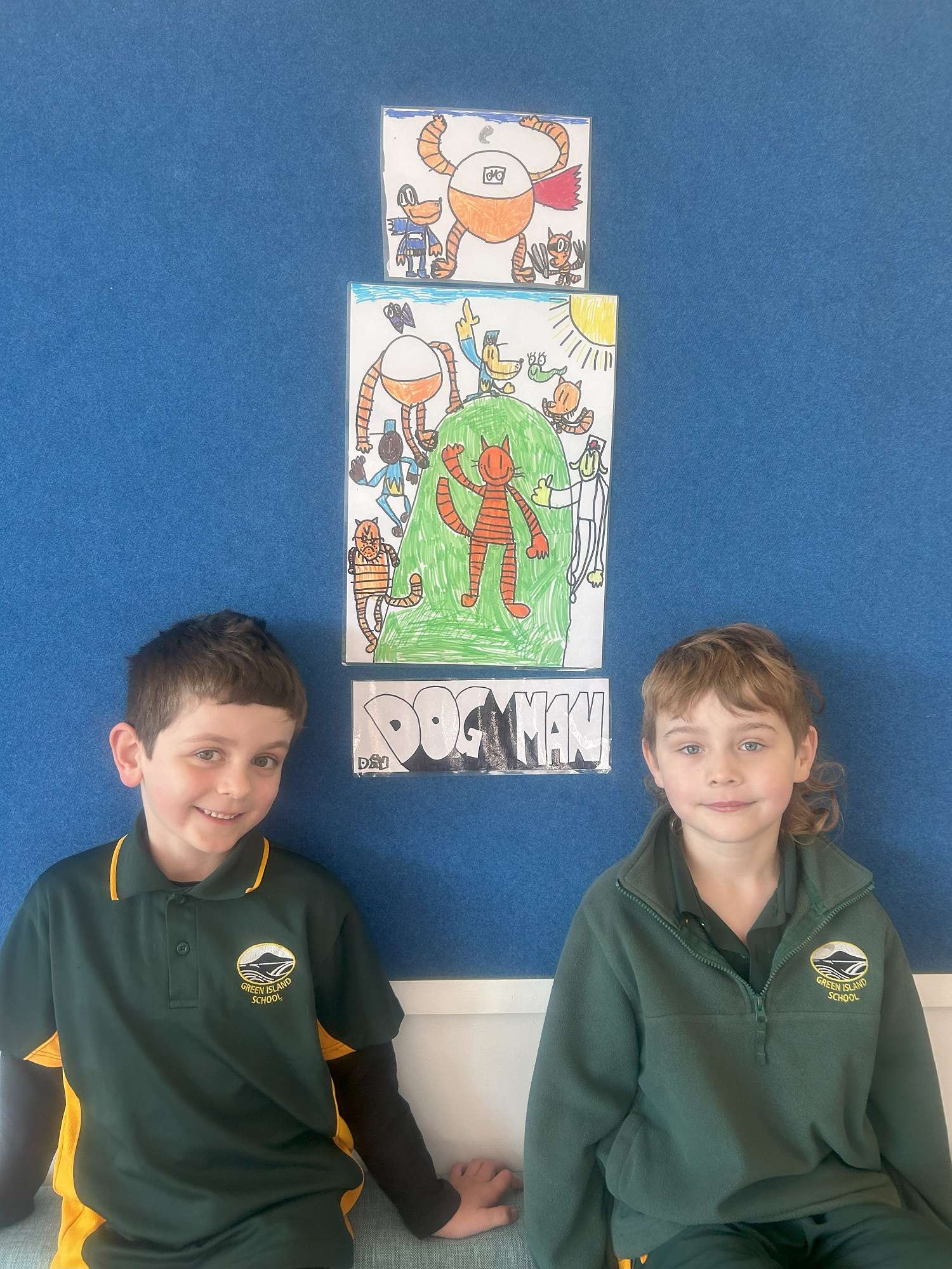A big thank you to Lincoln and Jack for brightening up our newly renovated library with their poster inspired by 'Dog Man.'