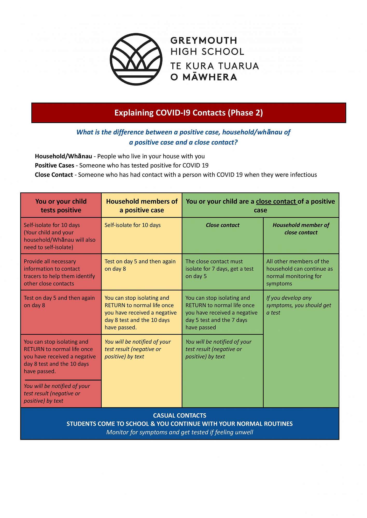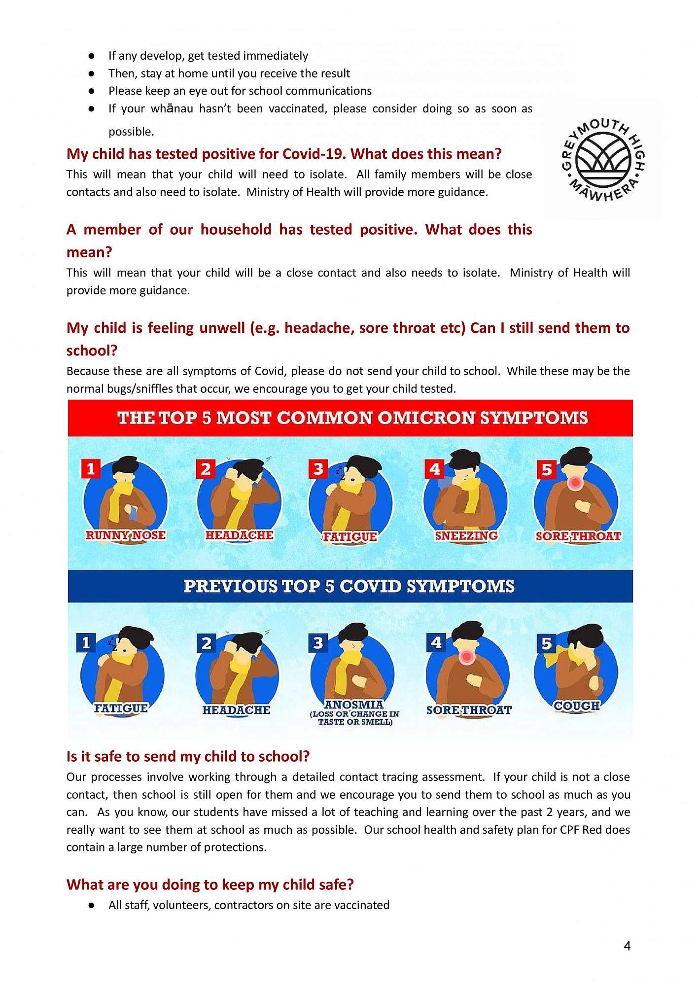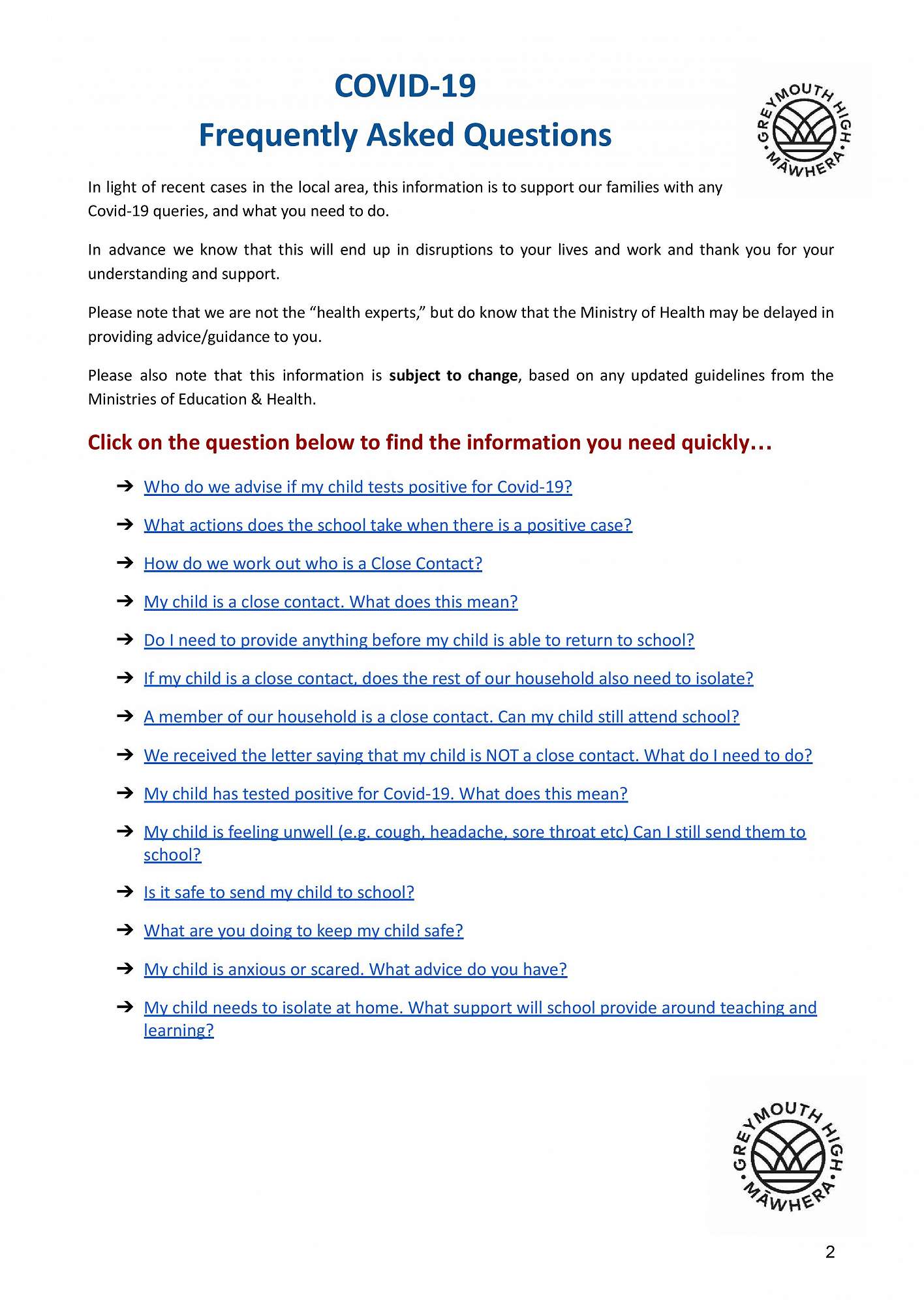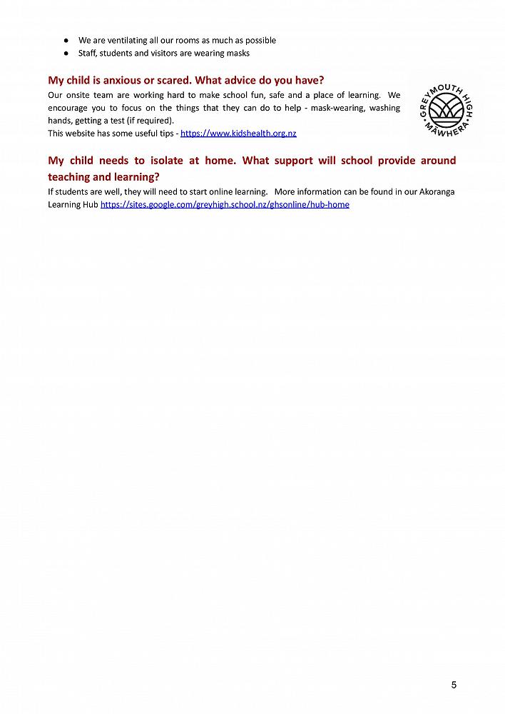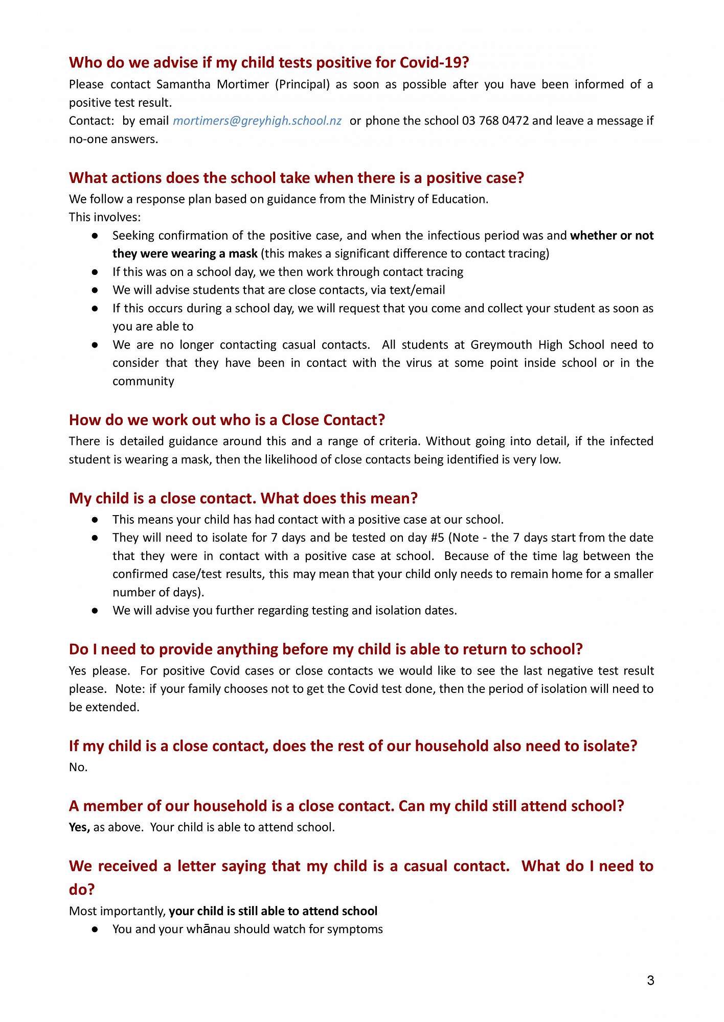 If you have any questions about the Covid-19 updates at Greymouth High School please contact us to discuss.