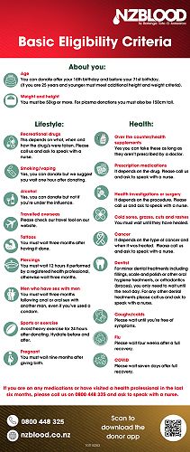Eligibility criteria apply – please review the Blood Donor ELIGIBILITY Criteria attached or complete the online Am I eligible? Quiz.