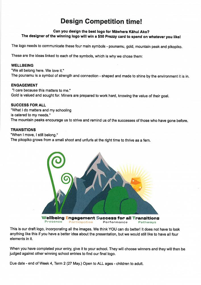Can you design the best logo for Māwhera Kāhui Ako? The designer of the winning logo will win a $50.00 Prezzy card to spend on whatever you like!