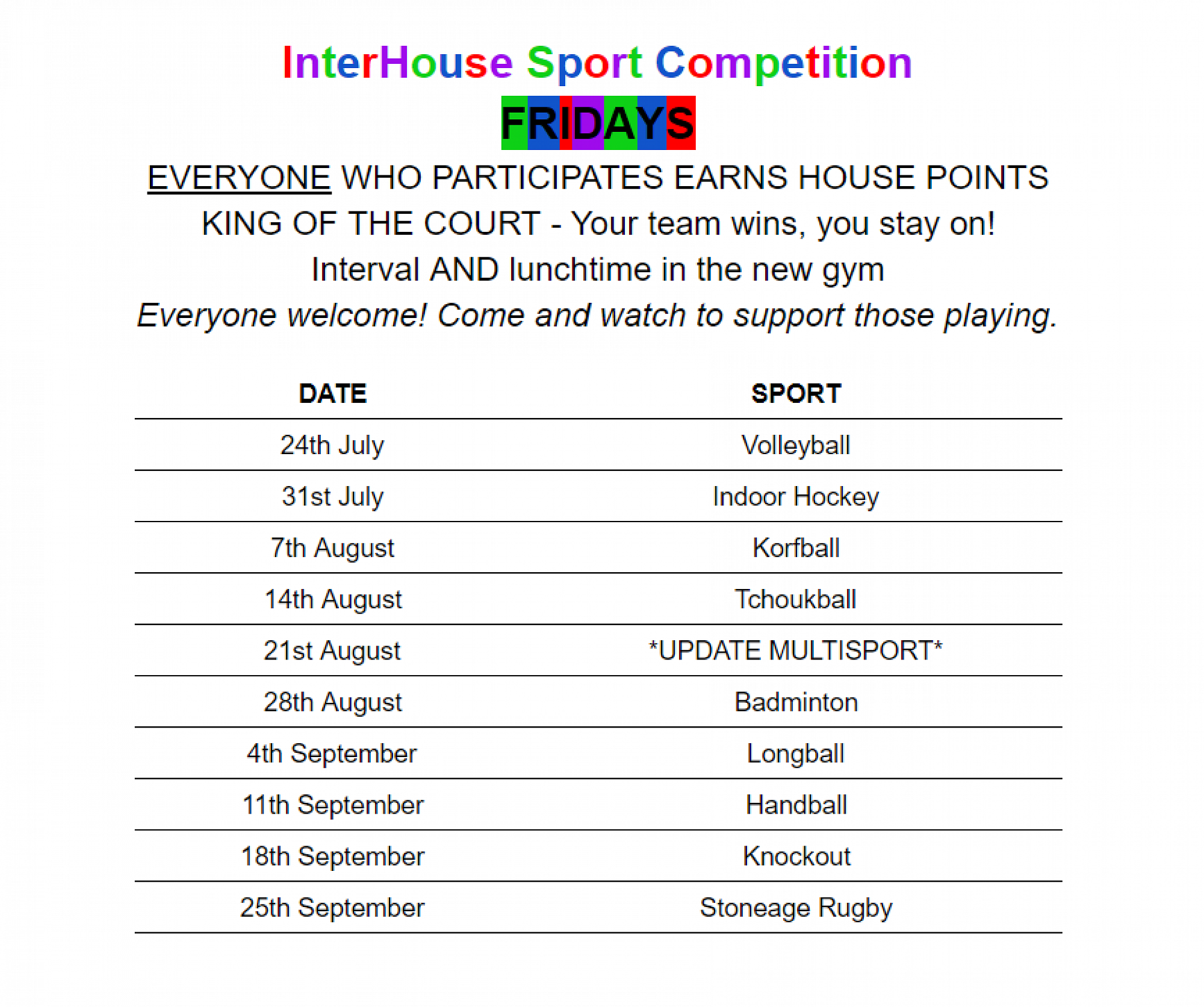 We saw tchoukball take the court on the 14th August. For many students and staff this was a new sport so it took a wee bit of time for people to get used to the rules and the specific ways to gain the most points.
