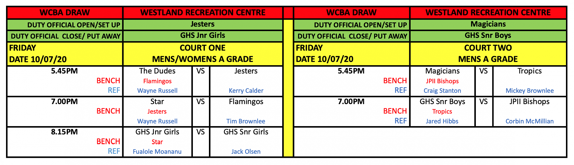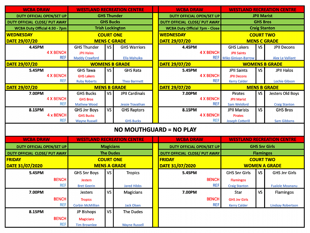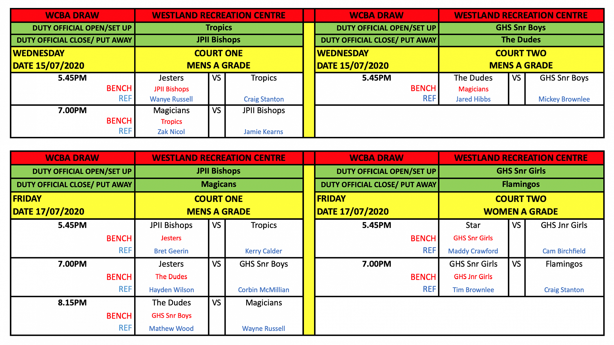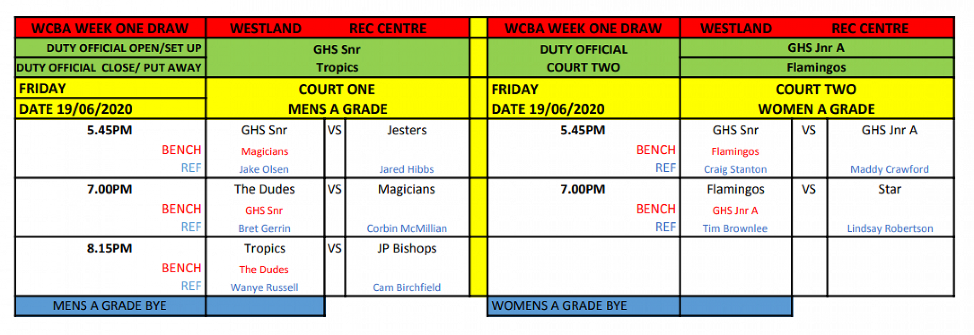Newest draws posted at the top of this article - double check draw for your team's game time, refereeing and bench duties. Best of luck for your games!