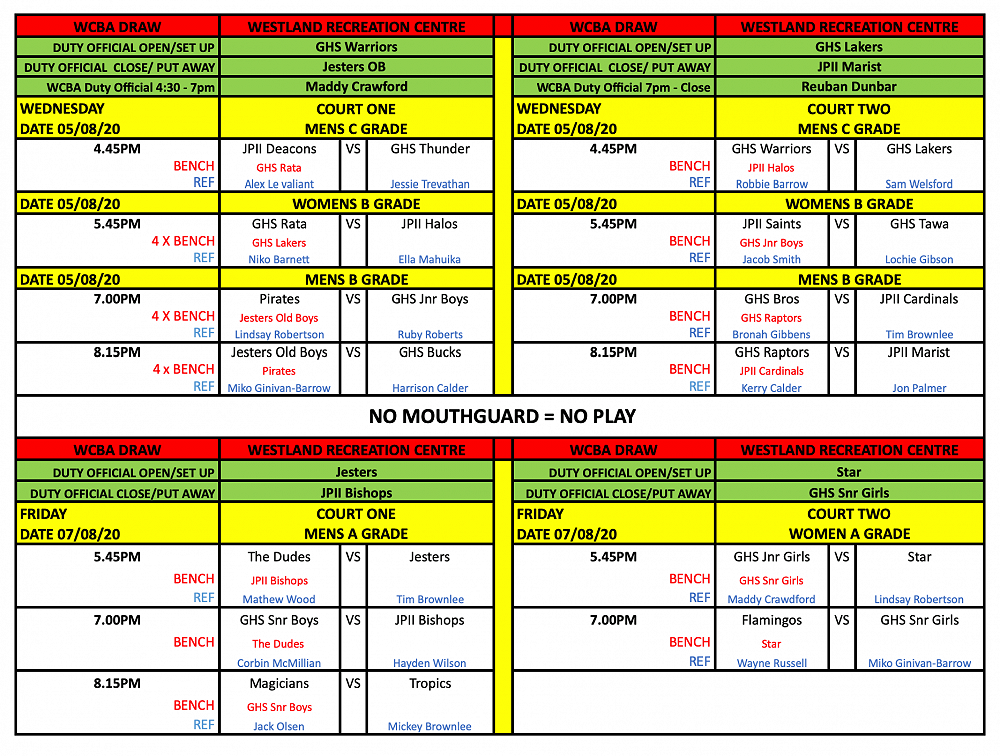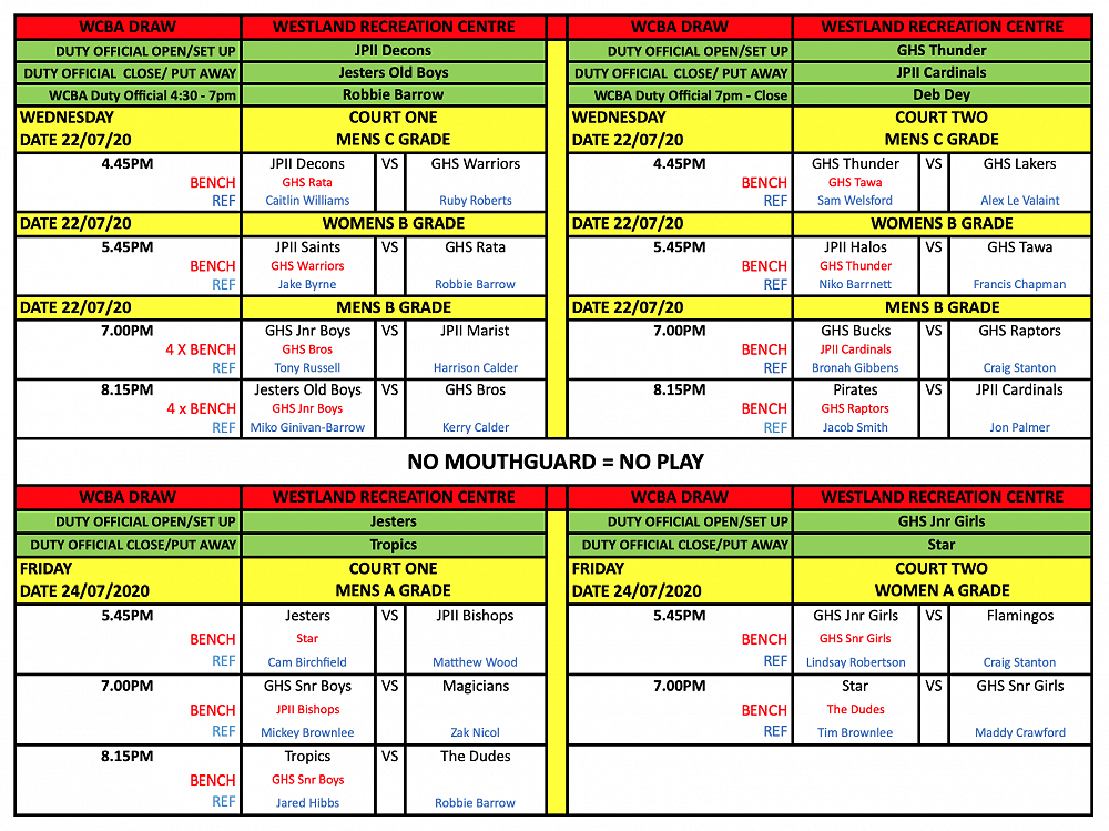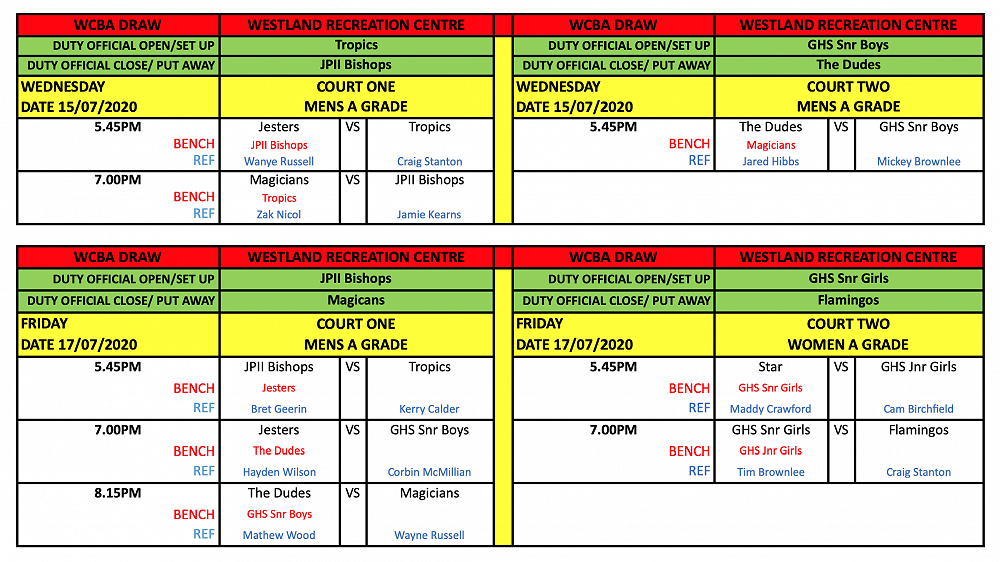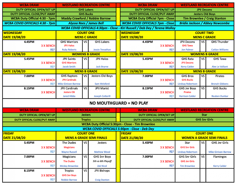 West Coast Basketball Draw - UPDATED 25/08/20