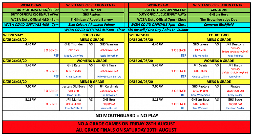 B/C Grade - Wednesday 26th August SEMIFINALS AND PLAYOFFS