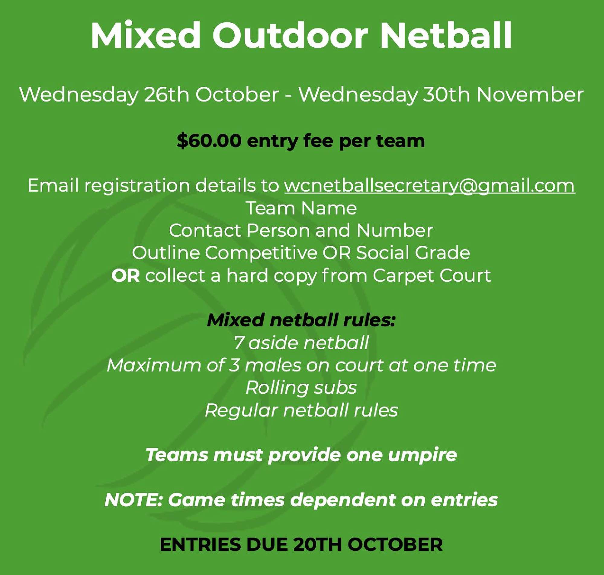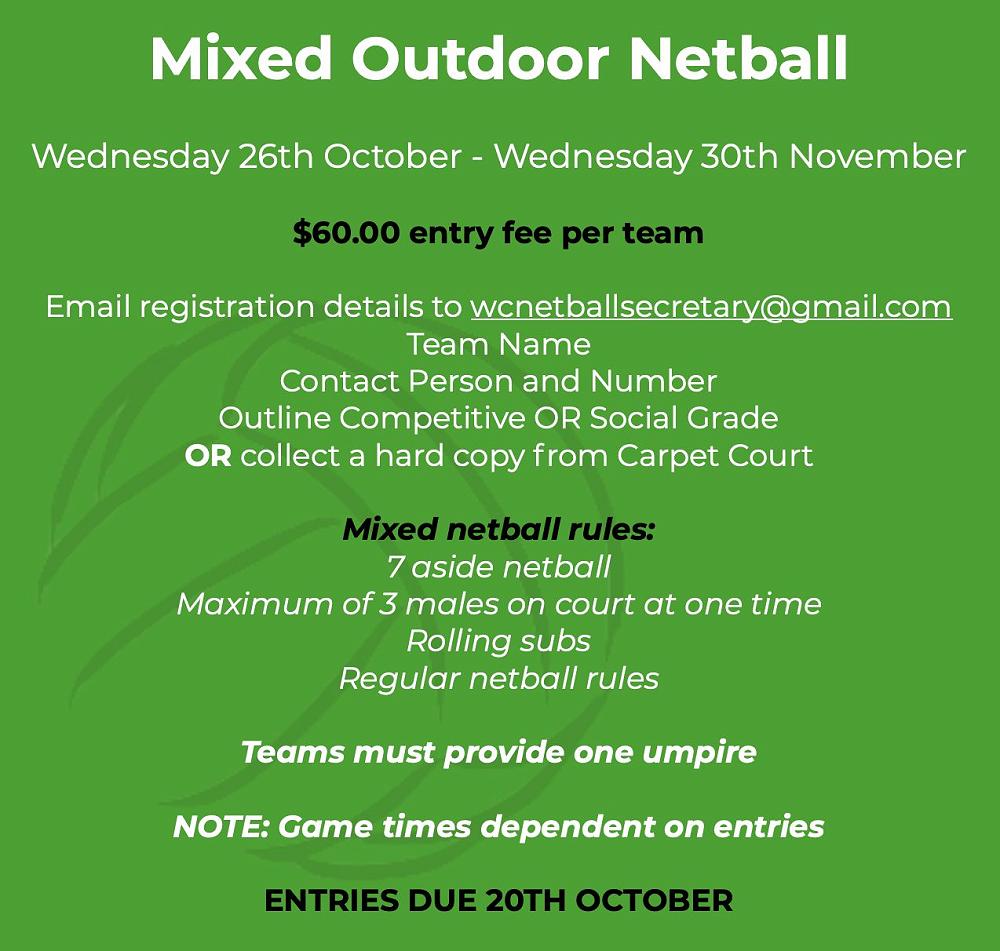 Mixed Netball, Touch, 3x3 Basketball, Volleyball, Tennis and more!
