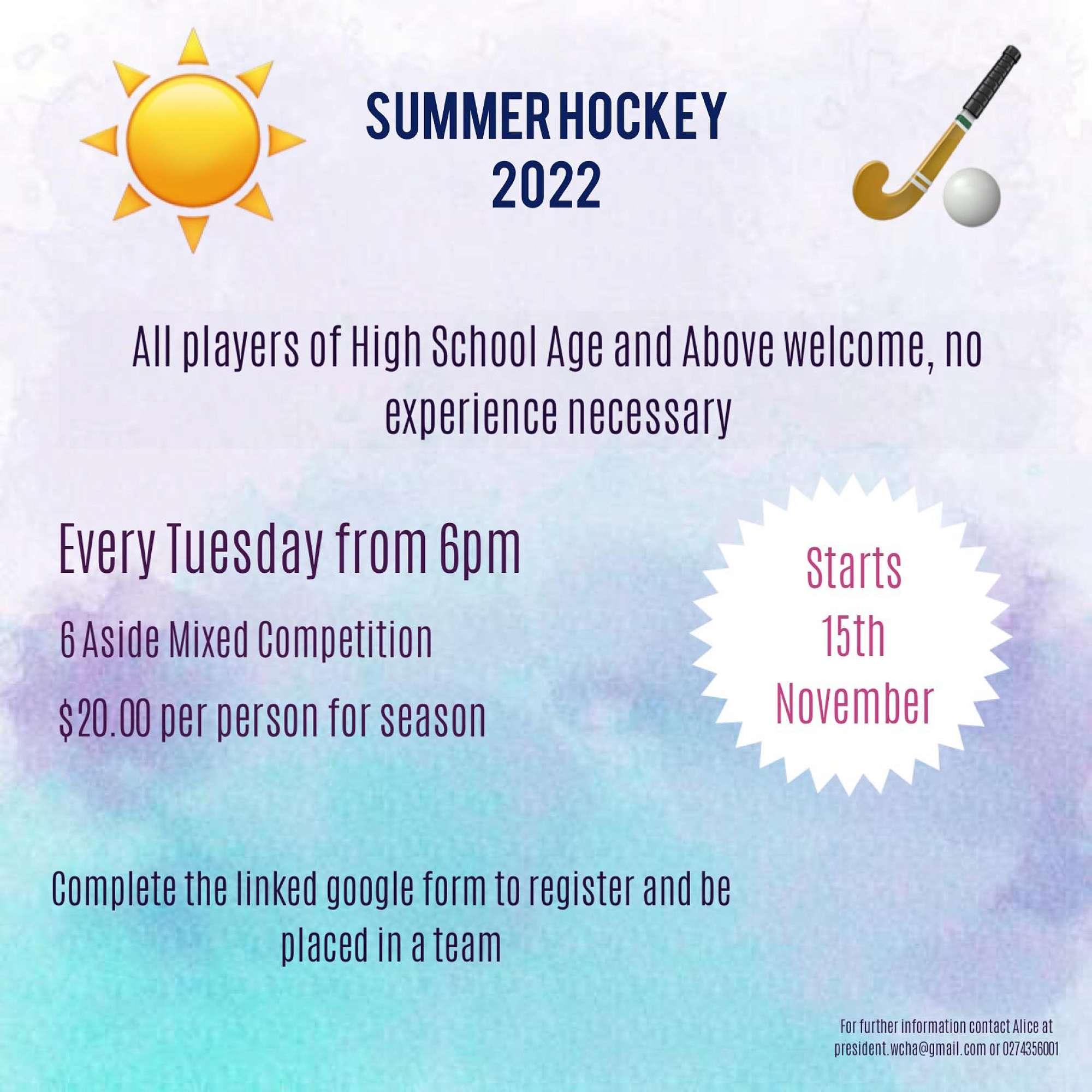 If there is another summer sport you are interested in please jump onto Facebook and search up the name of the sport, there may be a local group already offering this opportunity. If you need any assistance please see the Sports Coordinator at the Dave Mckenzie Gym or flick through a message with your questions - sport@greyhigh.school.nz