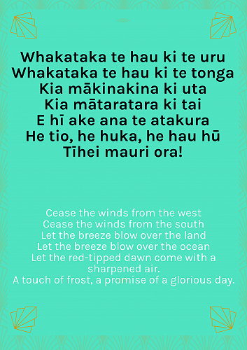 These karakia were used at the beginning (and one of them at the end) of the school day During Te Wiki o te Reo Māori - Māori Language Week - last year.