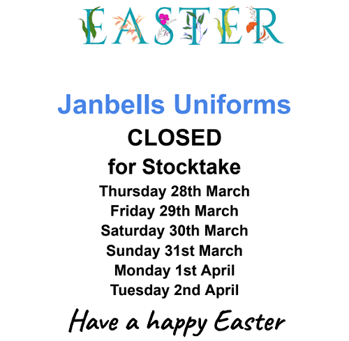 Please see the attachment for dates that Janbells Uniforms will be closed for stocktake over Easter.