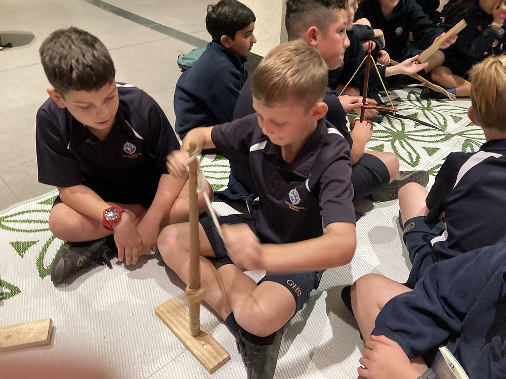 After that, the students had a deep-delve into New Zealand history, with a superbly-led interactive discussion of how the early settlers evolved into their new environment, and an exploration of the tools used to survive a more challenging climate!