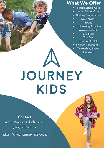 - For bookings and enquiries please contact JOURNEY KIDS : ADMIN@JOURNEYKIDS.CO.NZ PH: 027 286 5097