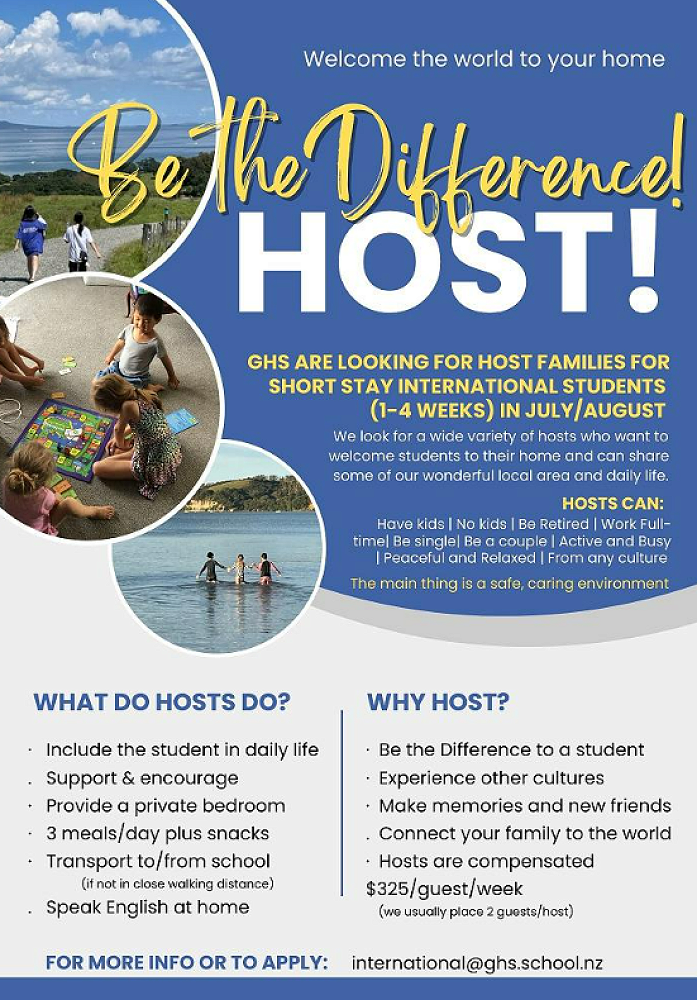To RSVP for catering purposes or for more information please contact Miriam Davis, International Co-Ordinator international@ghs.school.nz