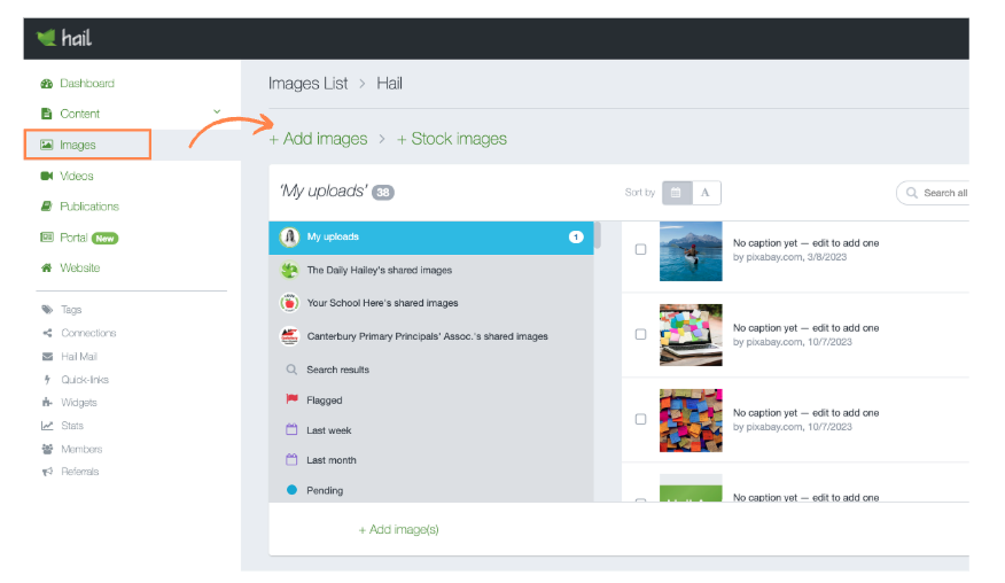 • Head to the Images section in the main menu on the left-hand side. Here you’ll find the Image Browser which defaults to listing your uploaded images, with the latest at the top and oldest at the bottom.