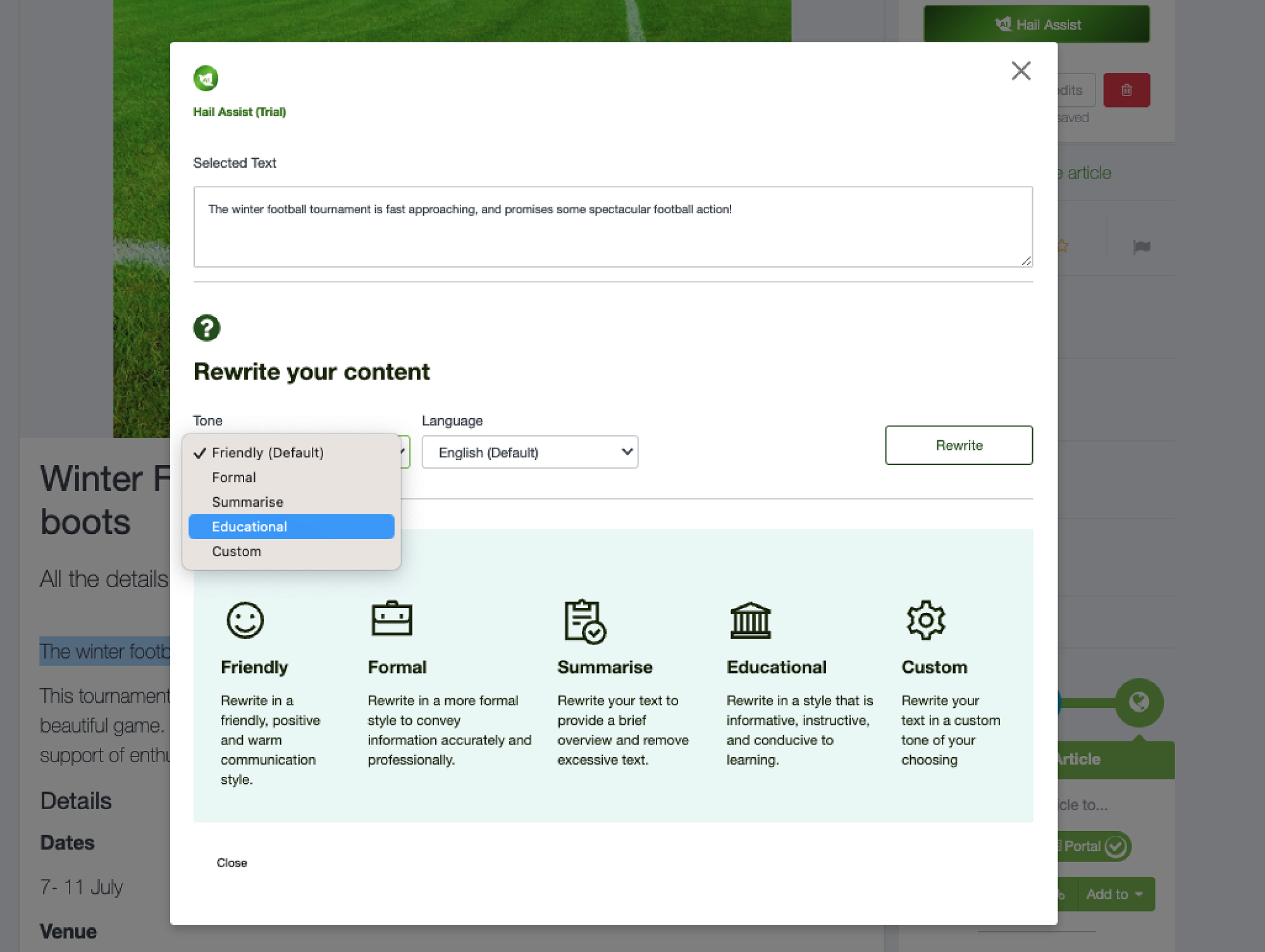This article explains how to use Hail Assist our latest feature to help you write and change content in Hail.