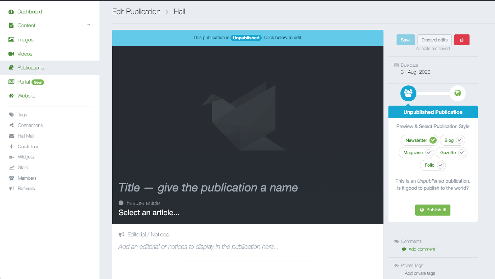 Even with Hail’s streamlined format, writing articles is still the tricky part. Luckily, creating and editing publications in Hail is very quick and easy…