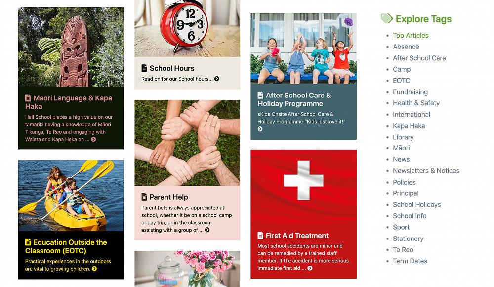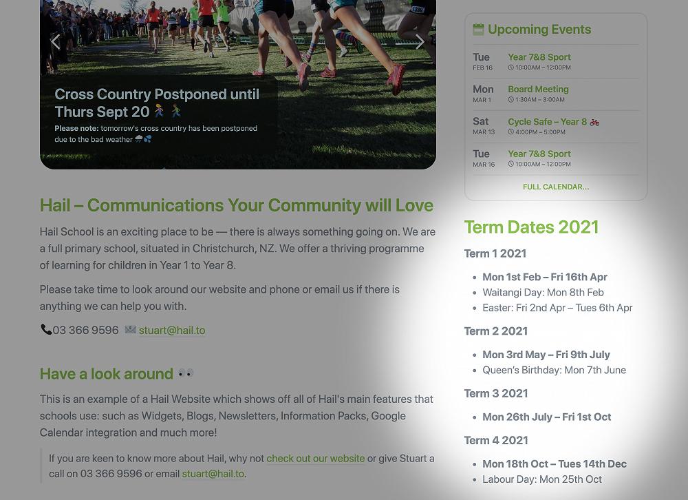 - Sidebar Text Block — a second text block ideal for easy listing and updating of school’s term dates and the like.