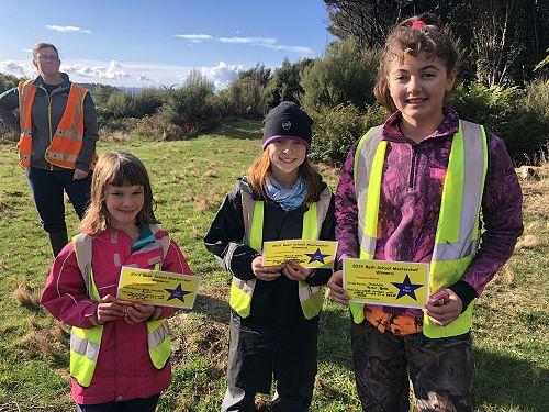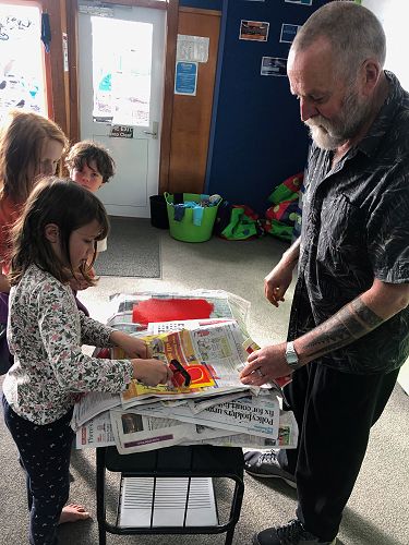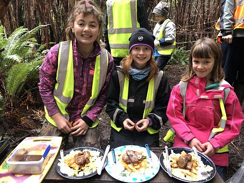 Last Bush School Rosie, the policewoman came to help us investigate a “crime scene”! We had to make a plaster of paris footprint mould, take fingerprints and look for any other clues and bag them up. Luckily the crime was solved and it was Fionn’s DAD who had been hunting and not stealing Moa bones.