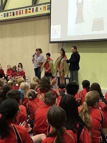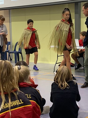 On Friday the 8th March, we were fortunate to have Craig Pauling, Tainui’s Dad, come in to our school and present the Kaitātaki Tane - Ben D- and Kaitātaki Wahine - Makaia W - (Male and Female leaders of Kapa Haka) with a Pākē (cloak).