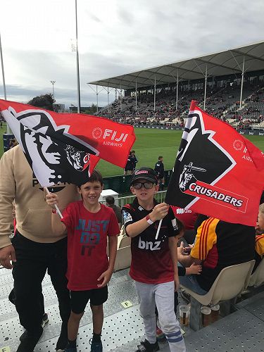 What a great time was had by all at the Crusaders game on the 9 March. Spirits were high and there was a lot of enthusiastic (and somewhat perilous) flag waving by the excited Halswell students, especially after each try and conversion - of which there were many. For some the match was a first, but it certainly won’t be the last. Here’s what some of our kids had to say: