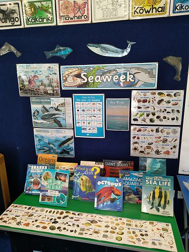 We're celebrating Sea Week in the library this week. The theme this year is 'Caring for our Oceans' and we've got two competitions in the library, a colouring competition for Years 0-4 and a writing competition for Years 5-8. Come and grab an entry form and check out the ocean books.