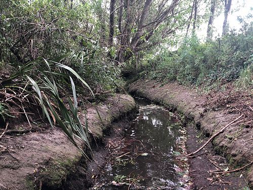 You can see Nottingham Stream at Muir Park, it flows into the Halswell River (Huritini) and out to Te Waihora/ Lake Ellesmere.