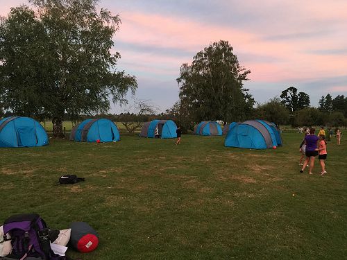 On Monday at Year 5 camp we were in a light blue tent. It was very windy like someone was blowing on the tent. The people in the tent were Lucas, Leon, Ryan and I. In the middle of the night some noisy people started talking like loud elephants in a tent. Then there was a howling like wolves. I was scared! My heart was pounding then I realised it was only the stags, so I went back to sleep. The sleeping bag was cozy and warm like fluffy bear fur. After that it was the morning. Overnight our tent had shrunk. I went outside and the sky was orange and yellow. I could see the moon and the sun.