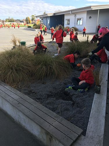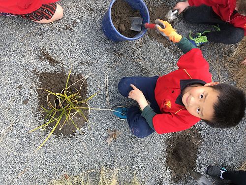 We have been making native bird masks, sorting rubbish and recycling, planting and entering the mural competition.