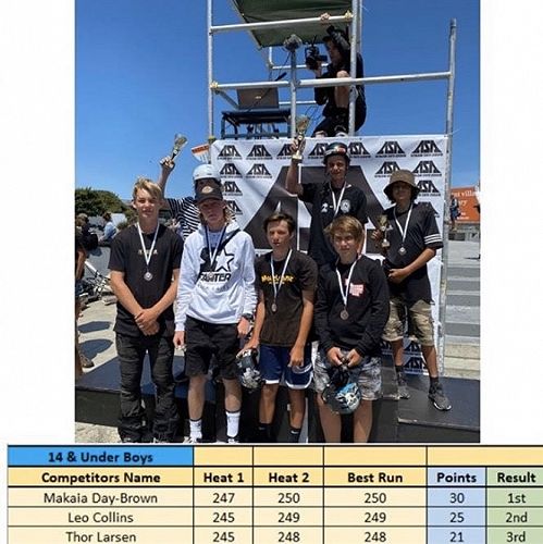 Three ex Halswell boys made it to the podium for their respective age groups in the NZ National Scootering Competition.