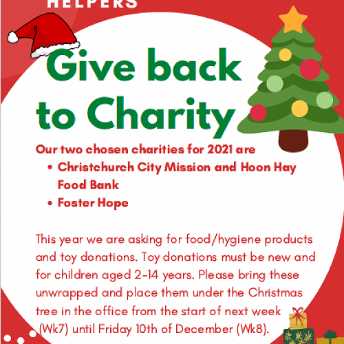 As we know this year has been another difficult year for many. The Halswell Holiday Helpers are once again collecting presents and food donations for Foster Hope, Christchurch City Mission and the Hoon Hay foodbank.