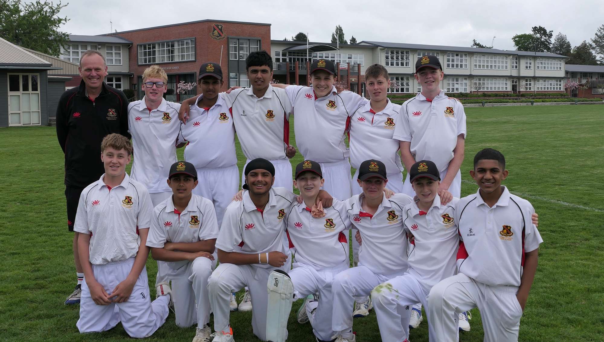 Four Year 9 boarders from Argyle House represented Hamilton Boys' High School in this Under 15 Cricket fixture. They were (left to right below): Daniel MacDonald, Jonah Funnell, Caleb de Bruin, and Samuel James.