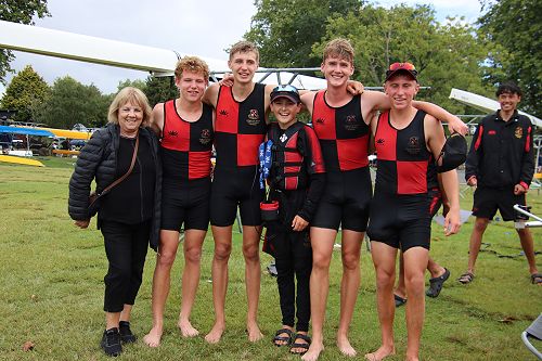 Under 17 Coxed Four: fourth place to Charles Parangi-Brown, Rion Ormsby-Harris, Corben Campbell, Jack Ramsey, and cox Darcy Boys.