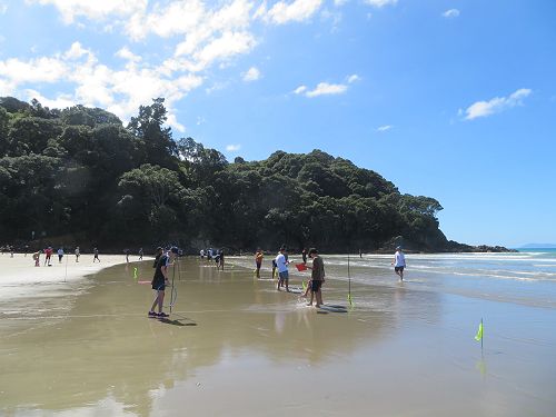 It was an early start for our students due to the need to arrive at the beach during low tide. We were also concerned about the state of the beach as it was shortly after Cyclone Gabrielle. However, we were incredibly lucky and the day turned out to be incredibly successful as the students collected data in three different locations along the beach. At each location, data was collected for the beach profile, type of sediment and longshore drift.