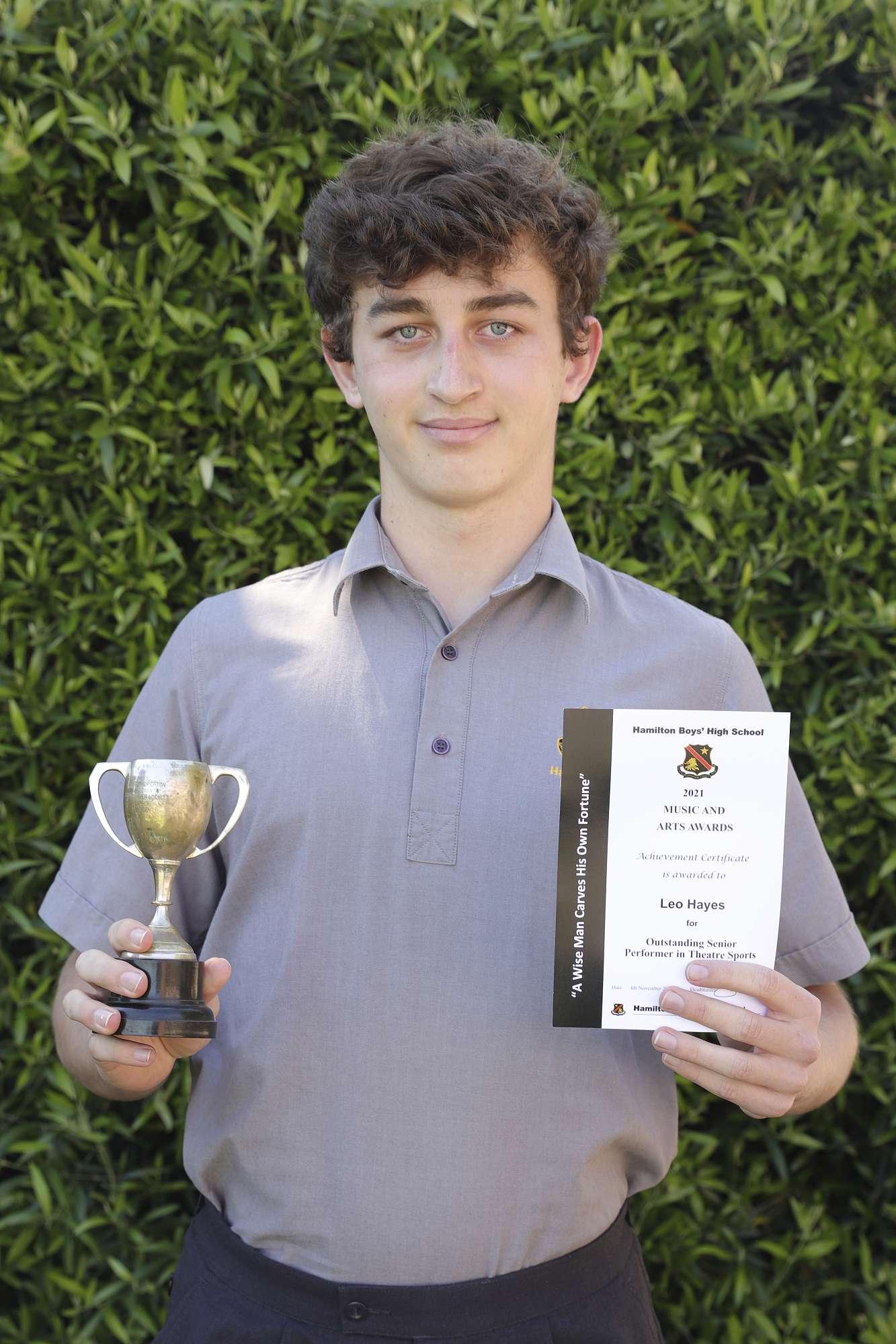The HBHS Outstanding Senior Performer in Theatre Sports Cup to Leo Hayes